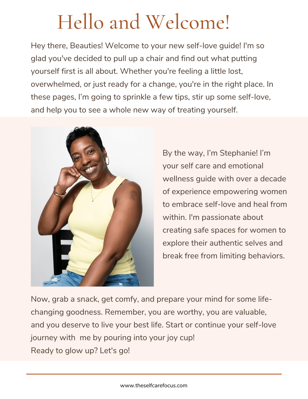 This e-book is your guide to learning why and how to put YOURSELF first. Girl, focus on your needs before anyone elses. Fill your joy cup first so you can pour without resentment.